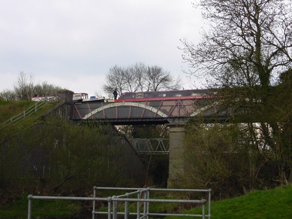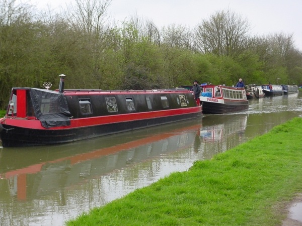 By the time we reached Braunston we were getting quite good at the art of casting off the cross straps as we approached a lock then swinging Keeping Up to one side and slowing down, so that Forward came alongside us as the two boats came to a halt together inside the lock. When it worked it was most impressive; when it didn't the results were utterly chaotic! The rain and the gales got steadily worse, but we remembered Billy Connolly's comment that "there's no such thing as bad weather, just the wrong clothes" and just kept on going. We had to keep going quite fast at times (apologies to some of the moored boats that we passed!) because otherwise the wind would blow Forward sideways and bring us to a halt; and yet a hire boat insisted on overtaking us as we approached Milton Keynes aqueduct and we had to do an emergency stop to avoid jamming across the start of the aqueduct; that left us stranded with two boats jack-knifed across the cut while the departing hirer swore obscenities at us for not making it easy for him to overtake. The next day we met another hire boat coming towards us at Pitstone; he didn't mind waiting for one boat to come through the bridge but didn't want to wait for another so he came straight through as soon as Keeping Up emerged, hitting Forward head on as a result!