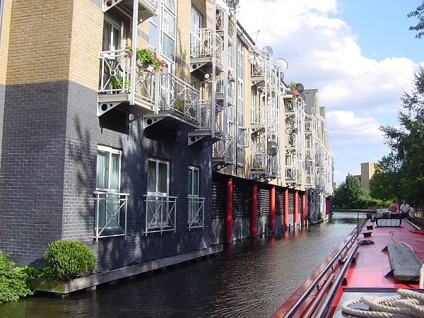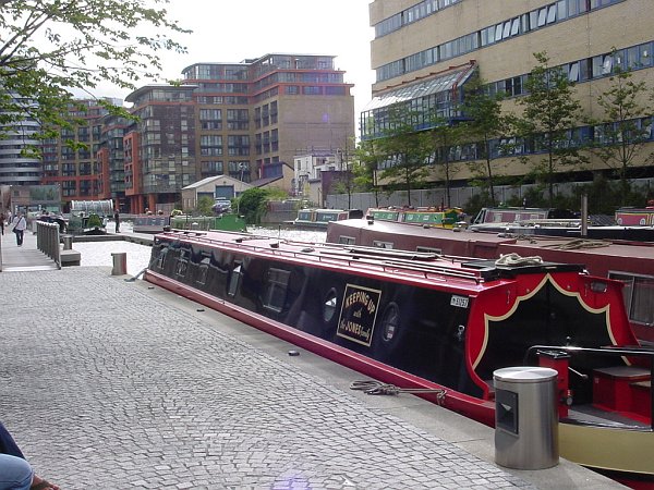 There were a few days to spare for a diversion down the lock-free Paddington Arm to Little Venice. Mooring up in the newly refurbished Paddington Basin (excellent moorings but no grass for the dogs to use) we walked through into the Edgware Road; for a few moments we stared at the chaotic traffic, at the hordes of hurrying pedestrians, and at the brightly-lit shops, with our mouths agape like country bumpkins. It had been a long time since we lived and worked in London, and now we just couldn’t cope with it; quickly we retraced our steps to the sanctuary of our world on the boat.