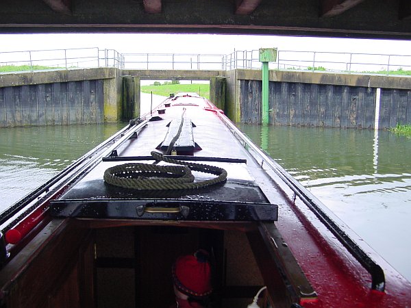 The disadvantage of having to close the guillotine after leaving the lock was instantly apparent; it takes 600 turns of the wheel to raise or lower the gate, so passage up and back would take 2400 rotations. I'll never complain about the Nene guillotines again (maybe). Also there's no lock-landing above the lock, so on a windy day (as it was) it's quite difficult to stop and then get going again.
