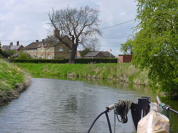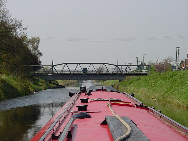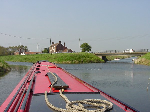 After a couple of glasses of wine to celebrate our successful entry to Boston via the Drains, we went back down Cowbridge Lock and set off up the wide, straight West Fen Drain. At the next junction, at Frithville, the Medlam Drain continues straight on and the West Fen Drain turns left, becoming much smaller as it does so. We climbed up the banks to look at the road signs and check our bearings before continuing along that Drain, noting as we did so that the bank-side gauges showed a 4" increase in water level since we came through Anton's Gowt. We hurried along, since if it increased by the same amount again during the afternoon, we would be unable to get back under the Meer Booth road bridge.