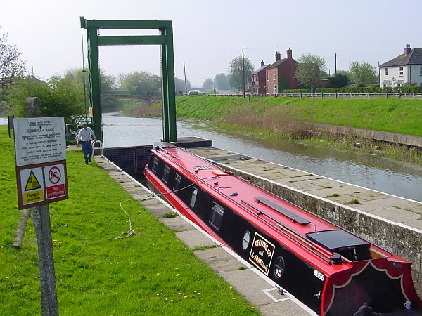 Luckily we arrived there at the end of April; the water levels were about right (although a bit low above the lock) and the weed had only just started to grow. There was just one potential problem, it had been reported to us that the bottom gates of the first lock (South Kyme Lock, about a mile upriver) wouldn't close properly. We investigated the night before, to find that the offending obstruction had been removed so the gates now shut properly; but unfortunately that obstruction had been the gate paddle so it was a bit more difficult to fill the lock (although as it was a guillotine gate at the top, it was simply a matter of raising it a bit further than usual, and then making sure you closed it behind you when you left; instructions to this effect had been posted at the lock so we knew it must be navigable).