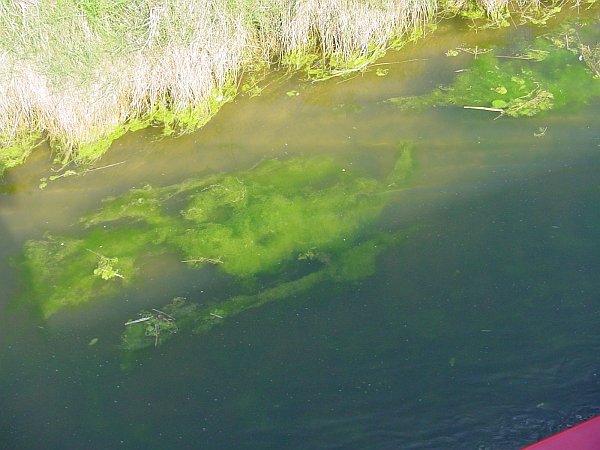 The river Kyme, or Kyme Eau, was originally navigable via the Sleaford Navigation up to Sleaford, but this is awaiting restoration. Being privately owned, the navigation of the Kyme is also a matter of chance, and is generally possible only for a few weeks in April or May, when the water level is right and the weed hasn't yet had time to grow. Some years it is navigable for longer than this; others it is never navigable by powered craft at all. The weed is like a thick blanket of candyfloss, filling the water and making navigation impossible in two distinct ways. Firstly, it forms one continuous mass that is almost impossible to push through, and secondly it collects around your propellor in an ever-growing ball so that it has no propulsive effect and becomes impossible to turn. You cannot simply pull it off the propellor, you would just keep pulling forever; you have to cut it away first, and then bow-haul the boat into clear water.