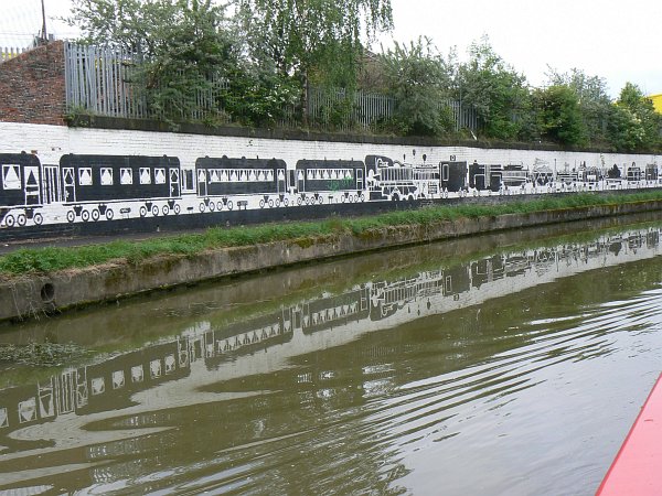 We decided to visit Llangollen again, as we could get there before the crowded school holiday period, but had no clear idea of where we would go after that. As we passed the magnificent Wolverton Mural I realised that it is now almost 25 years old, but that I didn't have any pictures of it so here are a few. It had mainly been painted as a project by the local schoolchildren, and they had subsequently done a good job of keeping it free of graffiti (because they knew who the local artists were).