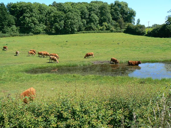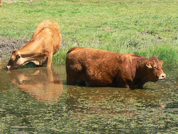 It wasn't long before the Welsh mountains came into view, then we were at Ellesmere in beautifully hot weather to meet our friend Chris from the Canal World Forum on his boat Jean Margaret again (we last met him on each of our early 2008 trips). The cows had found the best way of keeping cool, but we had to settle for cooling off in the pub (where we accidentally found ourselves involved with the pub quiz) and a good time was had by all.
