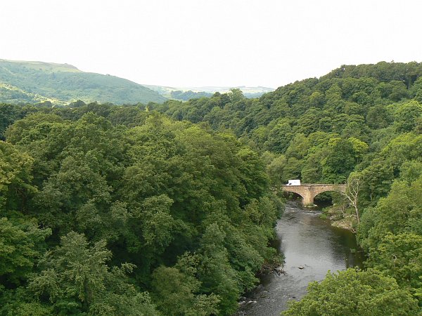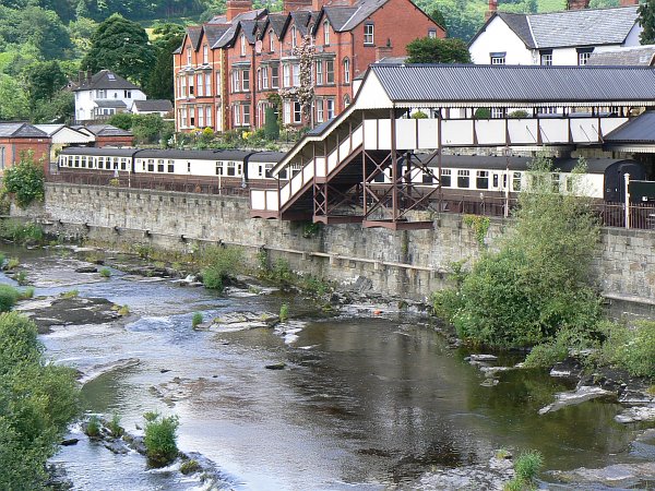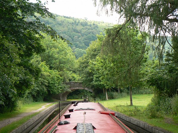 After making the usual cock-up of the left turn under the bridge at Trevor (this time I allowed too much for the flow of the current) we headed up the magnificent final section to Llangollen. At one point the boat coming the other way suddenly stopped, blocking the way; it turned out that "Dog-y-Felin" isn't a small Welsh village, it was their reason to have to stop the boat!