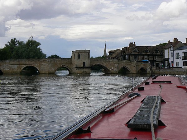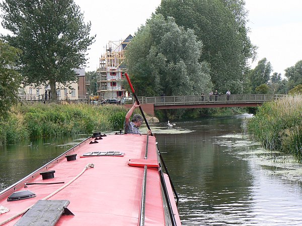 We were joined at Great Barford by a couple of friends who were keen to see Bedford from the river. Despite something of a hangover after a good evening with our friends from the cruiser - as well as another couple of friends from the Forum who had also joined us for the evening - we were up early to greet them and to make our way gently up the river. We had learned on our previous visit that with a long boat like ours it is best to ignore the signs on Great Barford bridge and to take the downstream arch when heading upstream, otherwise the current pushes the bows of the boat into the bushes before the stern has cleared the bridge, so that is what we did (much to our friends' surprise).
