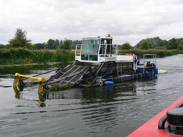 At the end of the Old West River is Earith, where the river is briefly again tidal. In 2004 when we had been here the river level had been several feet higher, but this time it was low enough to cause different problems; many boats were running aground in the shallows, and also there was a thick blanket of weed to either side of the centre channel..
