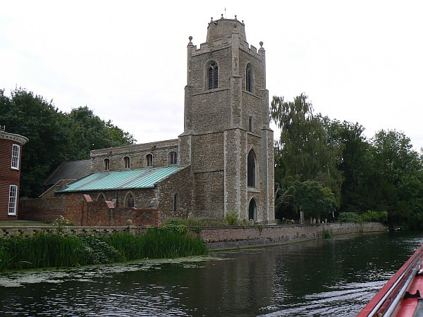 We stopped again at St Ives for a day. The bridge there, with its little chapel in the middle, is simply beautiful, with all the extra arches giving an indication of the way the river has always been prone to flooding. This time however there was no problem with the water level, which was just ideal. Then the next morning we headed up-river past the beautiful church of Hemingford Grey, where we were overtaken rapidly by a beautiful little steam launch whom we then caught up with as they waited in the next lock for us; like most of the locks on the Great Ouse the chamber has a lay-by inside so that it is wide enough to accommodate two boats with ease, even though the gates are often less than 14ft wide.. Shortly after that we stopped and chatted to another member of the Canal World Discussion Forum whose boat was also built by Stoke-on-Trent Boatbuilders, but a couple of years before ours. One of the best things about cruising without a time schedule, is that you can stop and chat to people whenever you like and for as long as you like.
