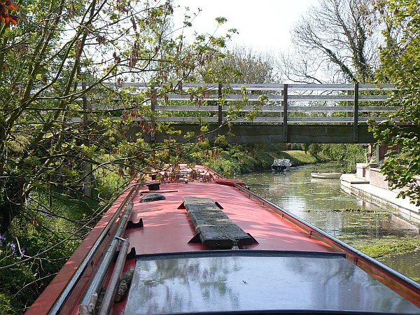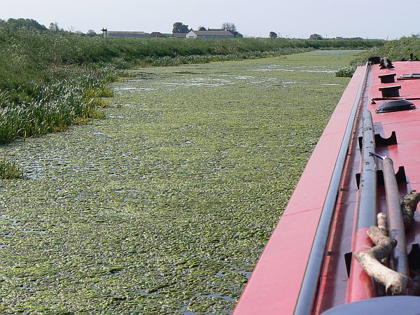Carrying onwards down the Witham we soon met our friends on 'Fairies Wear Boots' at Chapel Hill and made our way up the Kyme Eau. The weed on the river was very thick in places, and would make the river impassable later in the year. We decided to take one of the boats backwards, so that it would not need to turn at the head of navigation which was known to be rather silted up at the turning point, and later reversed the procedure by using a forward-facing boat to bring Keeping Up down the river backwards after the festival.