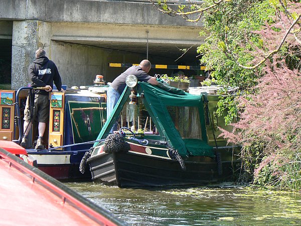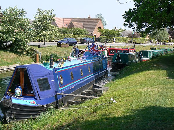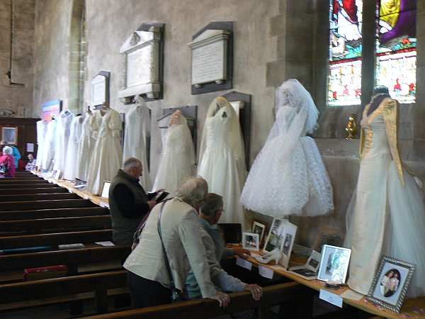 The Sunday morning started with a wonderful Boaters Service in the village Church, which was absolutely packed full. The Rector herself is a boater, so she knew exactly what she was talking about as we solemnly Gave Thanks "for canals and their social history; for the narrow boats, and locks, and winding holes, and tunnels". The church also had an exhibition of wedding dresses of the past 100 years, every one of which had been worn in that same church and had been lent by its owner.