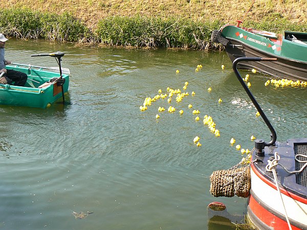 Back in South Kyme, after the Table-top Sale in the village hall the next event was the duck race. Because there was so little flow of water on the river, and the wind was blowing very strongly from the North, the race was run in reverse with the ducks being tipped into the water at the finishing line and then blown up-river to the start where - amid much cheering - the winner was declared.