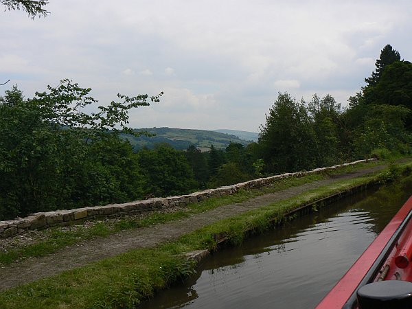 Soon we were back on the Llangollen Canal. We had made such good progress again that we could afford to spend a week there. Usually at this time of year the canal would be extremely busy, but this year we couldn't believe how quiet it was: the hire bases were full of un-hired boats, and there were no queues at the usual bottleneck places. What we did notice was that those people who had hired boats seemed to have been given very little by way of instruction. For example we arrived at New Marton locks we found ourselves behind a queue of hire-boaters, none of whom could work out how to operate the lock. One said he'd simply been told to go to the lock and wait until someone arrived who knew what to do; one said he'd been told in 5 seconds how to operate a lock, without reference to any pictures or models, and had promptly forgotten every word; one said he'd been told to watch a DVD that had been left on the boat, but the DVD player wasn't working. We instructed them all in the art of locking, and they set off happily up the canal again; a few days later when we arrived back at the locks, by chance we found the same set of boats - who had by now become firm friends and were all travelling together - waiting to go back down again; as Debbie walked up to them someone said "We're OK now, here comes the expert" and once again Debbie went into instructor mode (meanwhile I was busy rescuing a little shrew that had fallen into the canal next to our boat).
