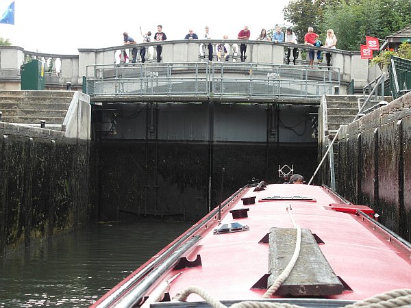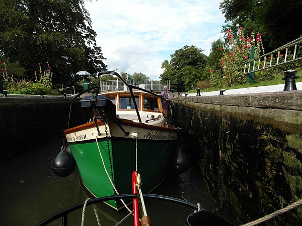 The low water level had resulted a quantity of debris being trapped on the weir below Gloucester, but the previous day's exceptional Spring Tide had over-topped the weir and washed it all up into the narrow Partings to cause a blockage. We were advised to hold back while it was being cleared, but despite our throttling right back and just drifting down with the current, the work-boat was still grappling with a reluctant tree-trunk as we approached and I had the interesting task of holding station in reverse gear until they were clear. After a few minutes they were able to tow the tree down river, launching it towards the weir and then joining us in the lock up to the Docks. We spent just a couple of days in Gloucester this time, but this still gave us time to have a wonderful meal of Lobster, Tapas, and Pancakes in the Tall Ship pub by the docks.