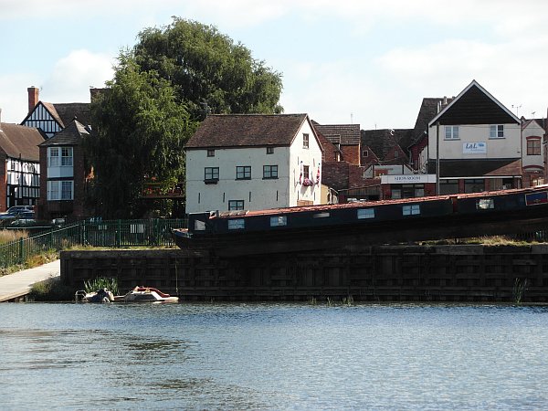 Our family crew then left us and returned home, so early the next morning we locked down to the river and started back upstream. The river was still flowing very slowly so we made good time to Diglis Lock (below Worcester) where we waited for nearly an hour to be allowed into the lock, even though the keeper let some boats down during this time. We couldn't raise him on the radio, and couldn't seem to attract his attention wherever we positioned ourselves although an engineer waved to us; apparently he was only there to survey the fitting of a CCTV system that would let the lock-keeper see boats more easily, but it never occurred to him to tell the lock keeper that we were there. Eventually I found the phone number and called him that way. The (deputy) lock keeper said we should have hooted to alert him, but another boat that we spoke to the following day said that they had hooted when the same thing happened to them later that same afternoon and the lock keeper had been extremely abusive to them for doing so.