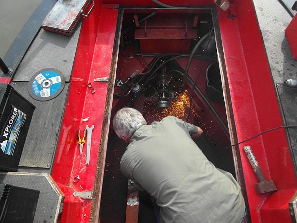 After just a few days we were at Stoke-on-Trent, visiting a couple of good friends who were moored in Festival Marina, and then calling into Keeping Up's birthplace at Longport. We were particularly interested to find out whether our cooling tank had been built with baffles inside it (to improve its performance by forcing the water to zig-zag through it) because Beta Marine had advised us that the tank might be too small if it did not have them. The boat builders told us that they didn't have any plans of our boat, and that of course everything was "bespoke" so there was no standard design for the tank on their boats; then just as we began to think that there was no way of finding out about the internal construction of the tank they suggested that perhaps we should speak to the man who had done the original welding on our boat. After 23 years he was still working there, and to our delight he remembered every single detail of her construction as she was the longest (and last) cruiser that they had ever built; even better, he specifically remembered welding 4 vertical baffles inside the tank. In fact he even remembered their exact dimensions in mm !!!!