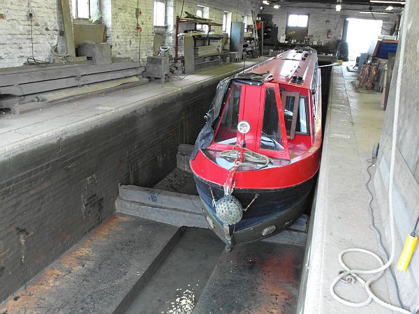 Last year's repairs to our gearbox, and subsequently to the prop-shaft bearings, had revealed that our prop-shaft and stern tube were both seriously worn and were in urgent need of replacement, so we were booked into the dry dock at Braunston before Easter. I had spent the winter improving the high-power wiring of the boat so we were just about ready to set off at the beginning of April, but then our beloved labrador Molly decided that after 14 happy years she had fulfilled all her lifetime ambitions and now just wanted to rest in peace. We delayed our departure for a few days more so the vet could help her on her way, then Telford accepted the role of Top Dog and assumed captaincy of the ship as we set off for Braunston.