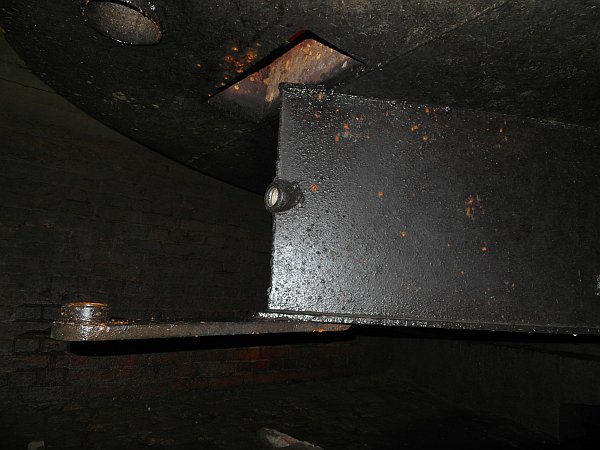 Within an hour the gearbox had let us down again by throwing all of its oil out into the bilges, but luckily I had bought two sets of spare gaskets and O-rings so I was able to manage a repair within an hour and we were soon back on our way towards Braunston. A couple of days later we were in their dry-dock with the water being drained away from beneath us, and the boat was settled on the wooden supports to allow the prop-shaft to be removed. The rudder had to be removed first but after 23 years in place it was rather reluctant to part company with the rest of the boat; however the combined efforts of a scaffolding pole as a lever on the handle of a Stilson wrench together with the determined efforts of a skilled engineer and a VERY large hammer eventually shifted it. When the prop-shaft was removed I was shocked to see that it had worn away to less than half its original diameter; no wonder I had had difficulty stopping the water from coming in through the bearings!