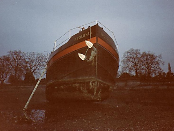 Apolonia was built in Holland about 1913. There are not many trees in Holland, so the Dutch have long specialised in building metal boats, and Apolonia was no exception being made of riveted iron plates. She was eventually motorised with a magnificent Gardner 5LW diesel (100hp at 750 rpm), and traded until probably the mid the 1960's; she then lay derelict until 1985 when she was found by John and James Griffin of the Wyvern Shipping Company.