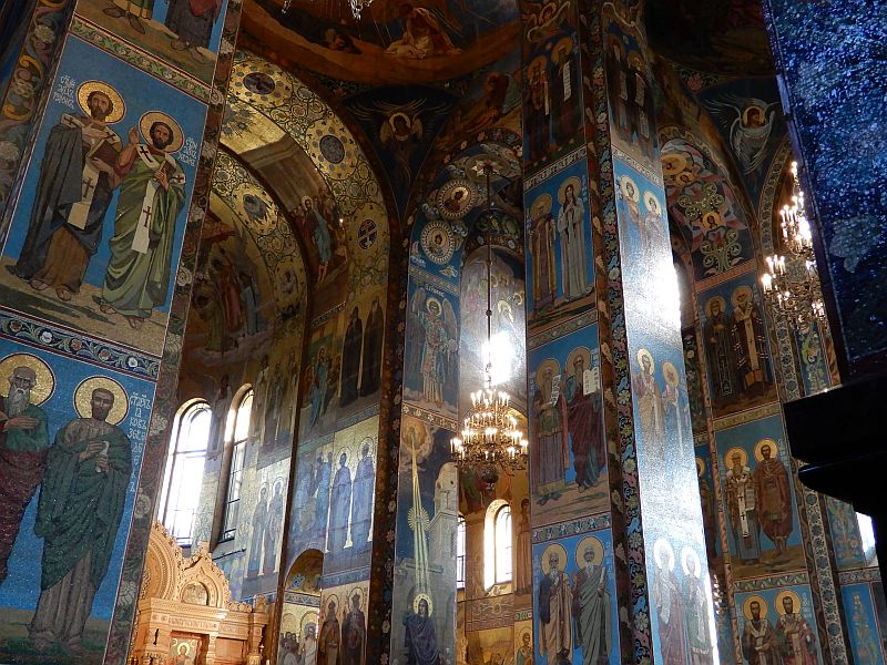After a couple of days at sea, we were looking forward to our third visit to the beautiful city of St Petersburg. We had arranged our chosen excursions over the two days to be as different as possible from those of our previous trips; they included visits to a local market and to a small shopping centre, afternoon tea and cakes, a ride on the Metro, and a tour of the inside of the iconic "Church on the Spilled Blood". We had seen the outside of this famous church, which was built on the spot where Alexander II was assassinated, but this was our first opportunity to see inside it.