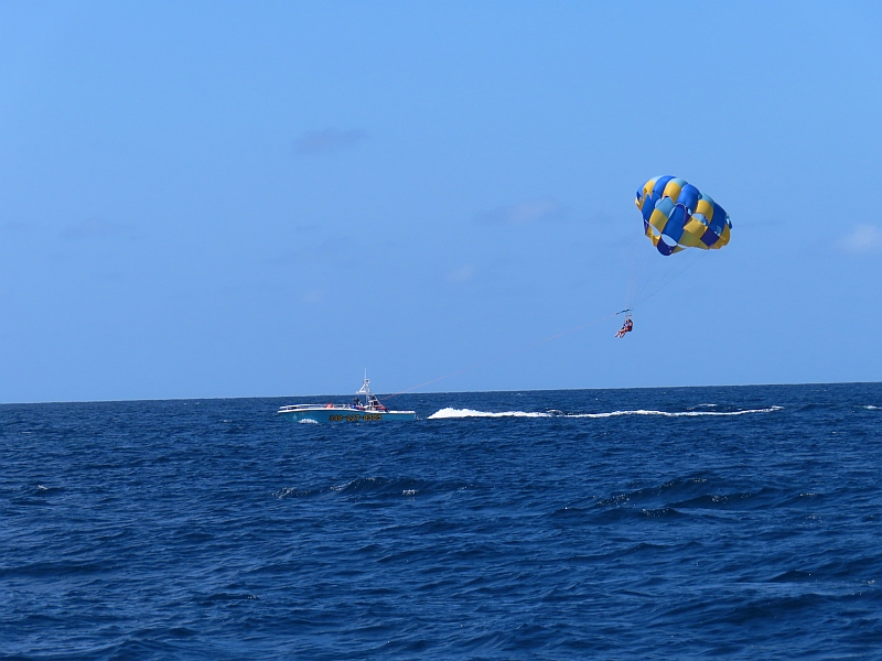 As we sailed back towards the harbour, people all around us were enjoying a side range of sea-based activities. The bays were full of craft from which people were snorkelling or scuba-diving, whilst a few people attempted other adventurous pursuits such as jet-boating and para-sailing.