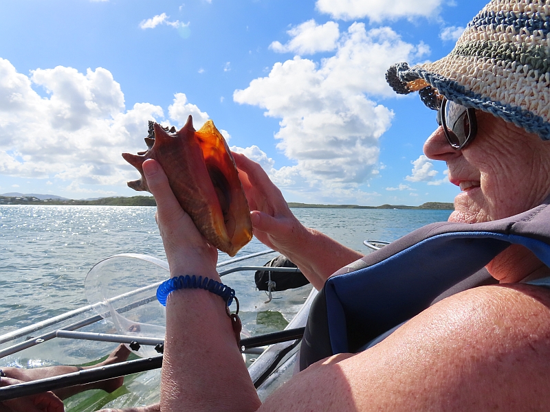 Debbie makes friends with a conch shell |