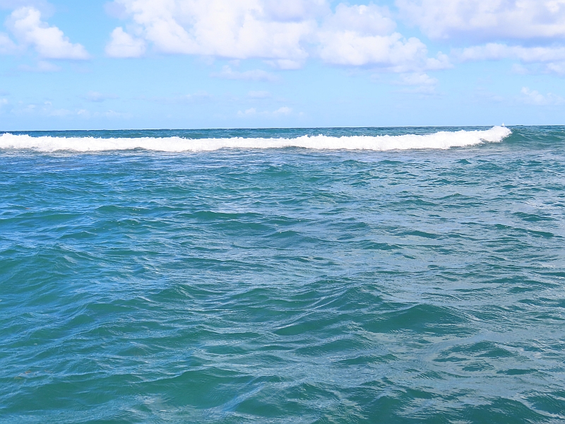 The sea was calm and cool, but not unpleasantly so, as we lowered ourselves into the water. Debbie soon found that she had difficulties with the mouthpiece and mask, whereas for myself I found it difficult to co-ordinate my swimming and breathing actions, so I kept getting mouthfuls of sea-water. However I persevered and was rewarded with successfully swimming out to see a sunken shipwreck. After everybody had returned to the catamaran we continued to another bay; Debbie decided to stay on board this time, but I was pleased to find that my system had learned the lessons from my first swim and I was no longer trying to swallow the sea!. Happily I swam away, watching the sea-bed with great clarity through my custom lenses, until I was rewarded with a clear view of a sea-turtle swimming below me. I was exhausted by the time I returned to the catamaran, but the plentiful supply of rum punch that was served on our return journey managed to revive me.