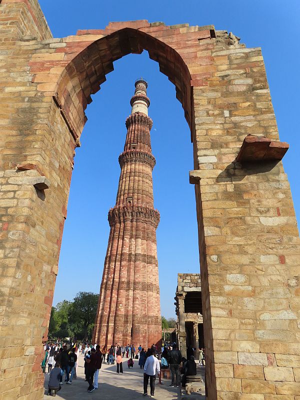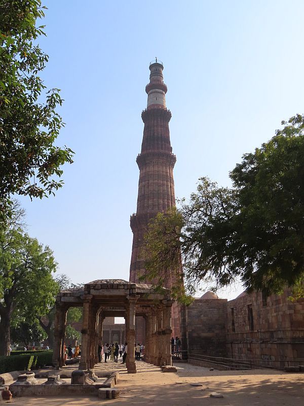 After a delicious lunch of lamb curry in a local restaurant, we continued that afternoon to visit an even older mosque, the Quwwatul Islam Mosque. Built about 750 years ago, its most striking feature is the Tower of Victory which celebrates the Islamic conquest of India in 1192. Built from the ruins of Jain and Hindu temples, this tower was so well constructed that it is still absolutely upright after all these years despite the occurrence of several earthquakes during that time.
