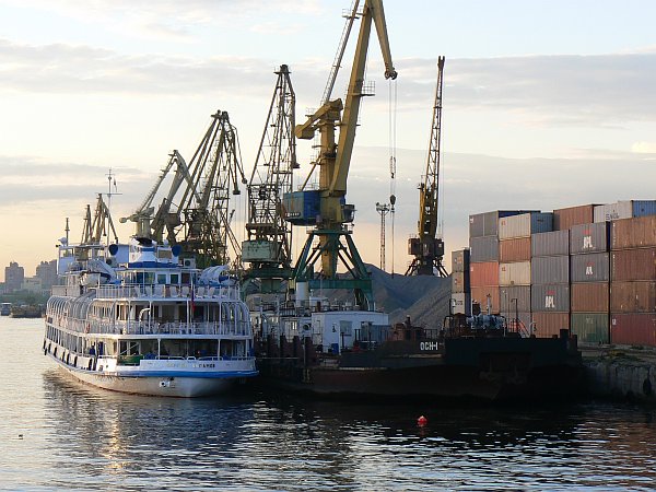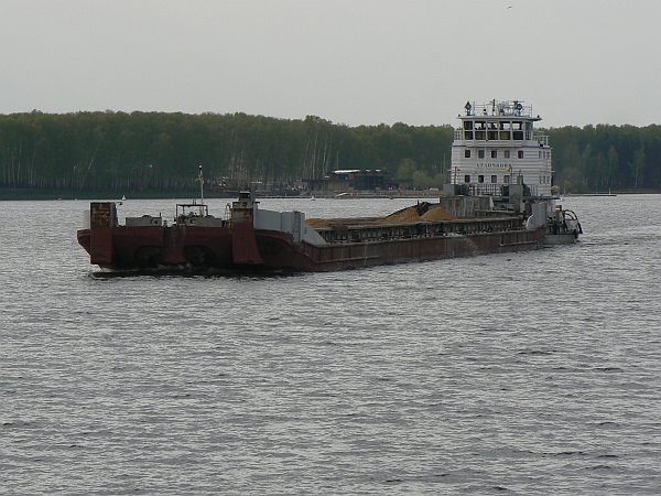 The 1000-mile journey from Moscow to St Petersburg can only be undertaken from May to September; at other times most of it is frozen. It is busy with shipping at all times, not just the tourist ships such as we were on, but also a great many barges which are generally pushed singly or in pairs by giant push-tugs; their cargoes are generally timber, or sand and gravel. Unusually, we even saw a submarine arrive in Moscow along the canal.