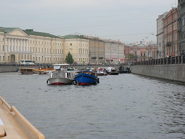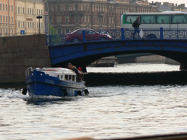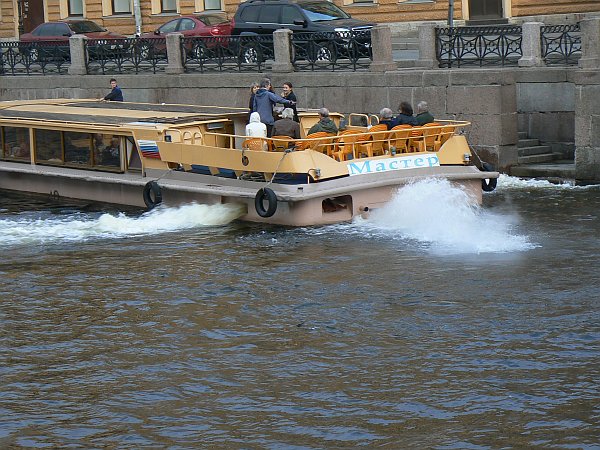 The River Neva at St Petersburg is crossed by massive 8 lift-bridges. They are lifted to allow boat traffic every night between 1.30 and 6.30 am; between those hours there is no way of crossing from one side of the city to the other (although recently a high-level suspension bridge has been built at the eastern edge of the city). St Petersburg itself has been nicknamed “the Venice of the North” since it stands on 42 islands, with 65 rivers and canals being crossed by over 600 bridges. Many of the canals are busy with trip-boats, which appear to be powered by some sort of water-jet system.