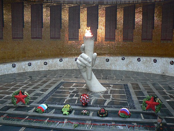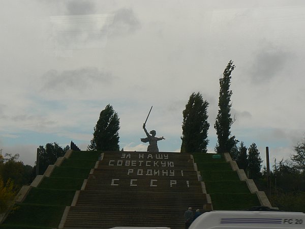When the city was reconstructed after the war, even the alignment of the streets was changed to serve as an everlasting memorial in itself. The main memorial to the Battle of Stalingrad is just outside the city, on top of a hill which has 200 steps, one for every day of the siege. From the foot of the hill the statue of Mother Russia is visible high above you, but as you climb the steps your view is increasingly blocked by a statue of a Russian Soldier until at one point your view of Mother Russia is totally blocked and you can only proceed by passing the soldier. The symbolism is extremely powerful.