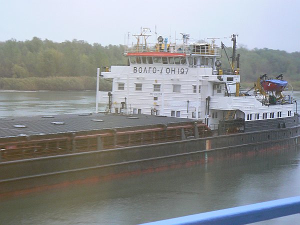 Retracing our steps towards Volgograd, after a day we made the turn West into the Volga-Don canal. Providing the only link to the Black Sea, this canal is extremely heavily used by its fleet of 'Volga-Don' 5000-ton cargo boats. One of the fleet can just be seen in the third photo here: