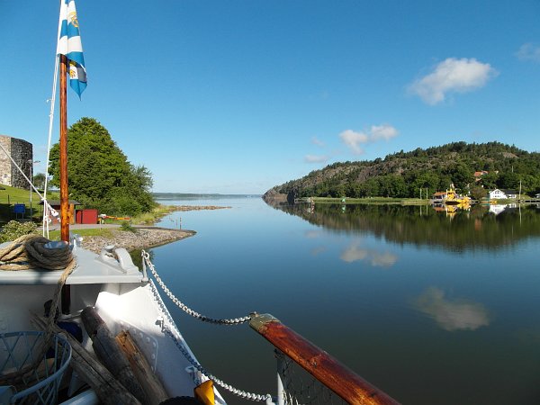 After Trosa we headed south for a little more history, visiting the beautiful old nunnery at Stegeborg which was originally built to guard the entrance to the lake leading to the towns of Mem and Soderkoping. It was at Mem that we would join the Eastern end of the canal, so we were in a hurry to reach our next destination, but we were happy first to spend a peaceful hour wandering around the old nunnery and its gardens. There was some hundred-year-old graffiti on one of the old stones; normally I disapprove of graffiti, but perhaps it is worth making an exception when it has been written personally by the King to mark the preservation of the nunnery!