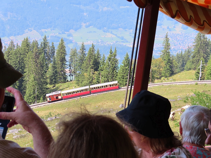 Our short stay at the top of the mountain was simply amazing. The weather was perfect, allowing us fabulous views of the scenery around us. It felt as if we were up there with the clouds - except that fortunately there were hardly any - as we wandered around the Alpine flower gardens and enjoyed the bright sunshine that reflected from the snowy peaks around us. We had time to drink a cup of coffee and buy a couple of souvenirs before catching the train back down to the foot of the mountain.